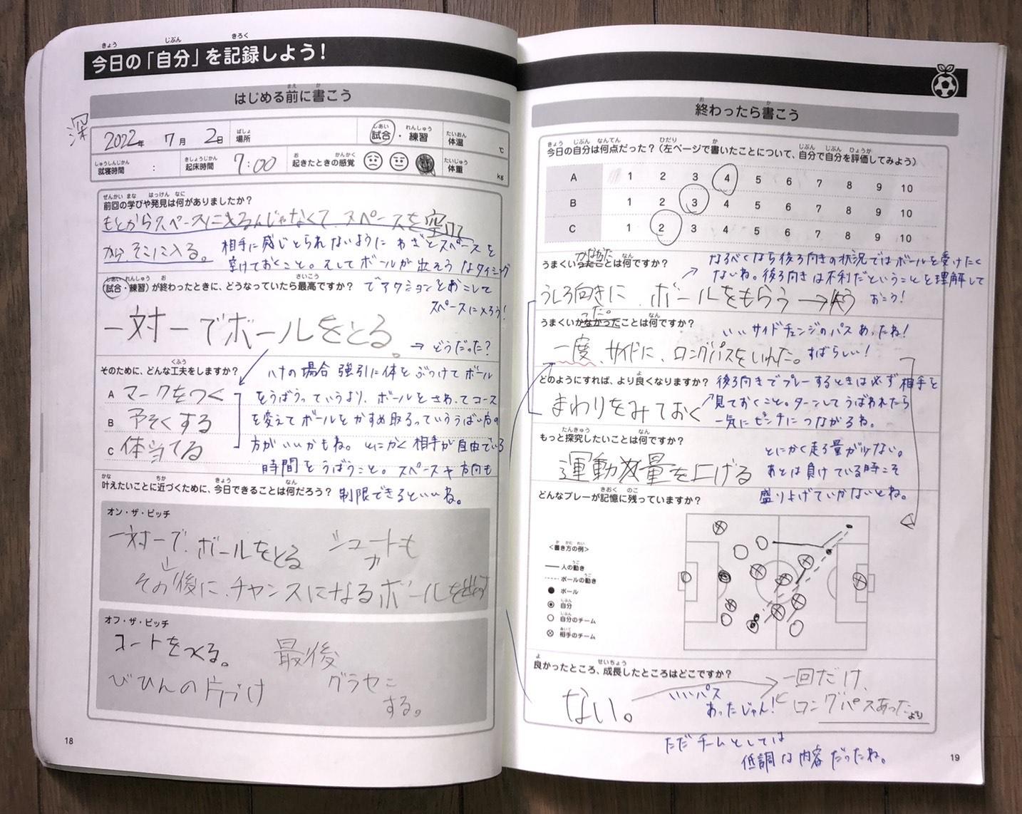 「上手くなるためにコーンドリブルやリフティングを頑張っています。テクダマでリフティングをする際に軸がズレる。普通では行かないところに飛んで、反射神経が鍛えられます。普通なら真上に行くのに、斜め前とかに行って、最初は動くのが難しかった。ボールを蹴ってから、次に蹴るためにボールを見たり、準備をするようにしています。