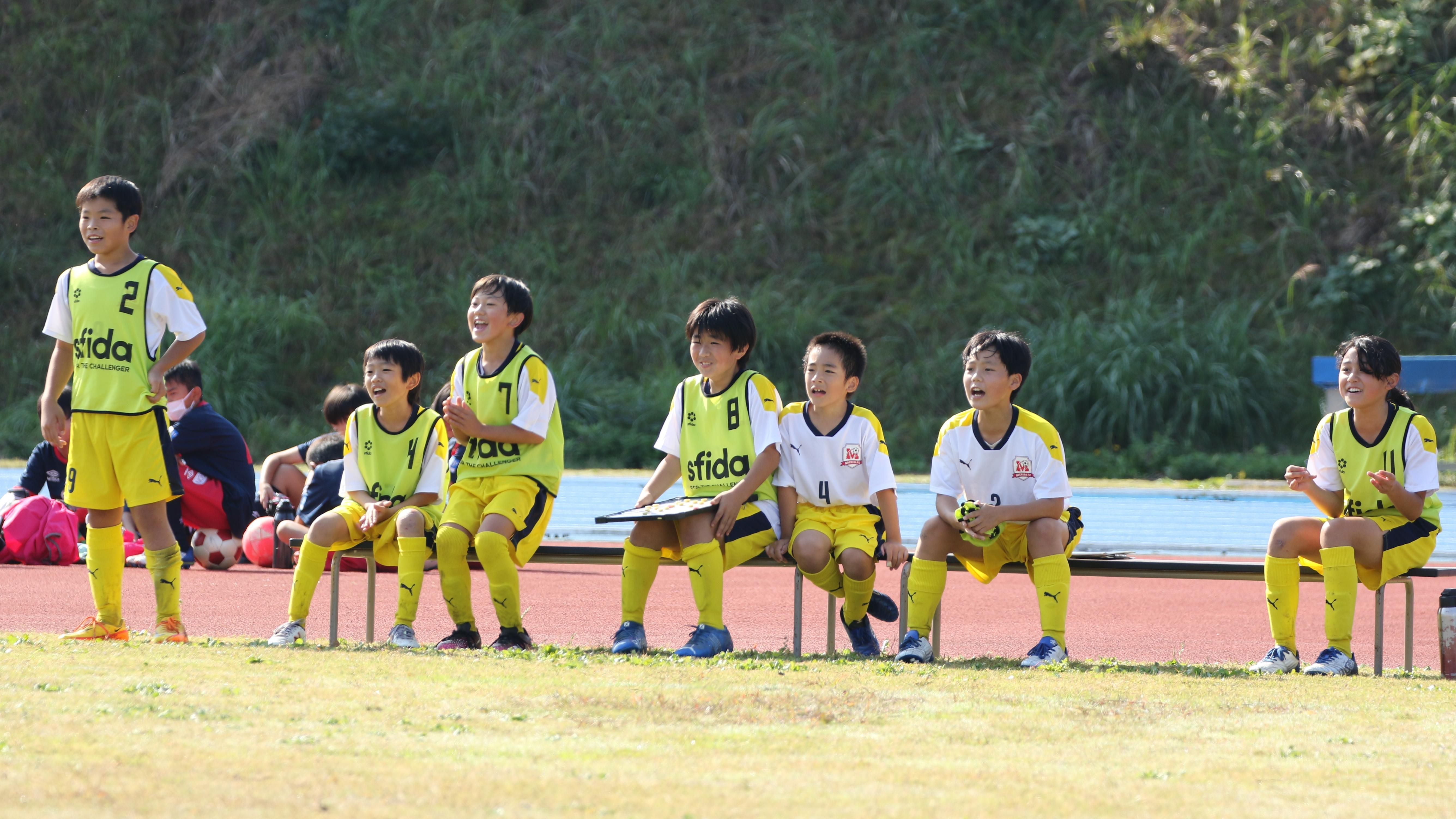 監督やコーチは反対側のベンチで声を出さず見守っているだけなので、ピッチの中のチームメイトへの声掛けも選手たちが積極的に行います。外から見たプレーのアドバイスだけでなく、「いいよ、いいよ!」「ここから1点取り返そう」「まだまだいけるよ」など、ポジティブな声掛けが響き渡っていました。
