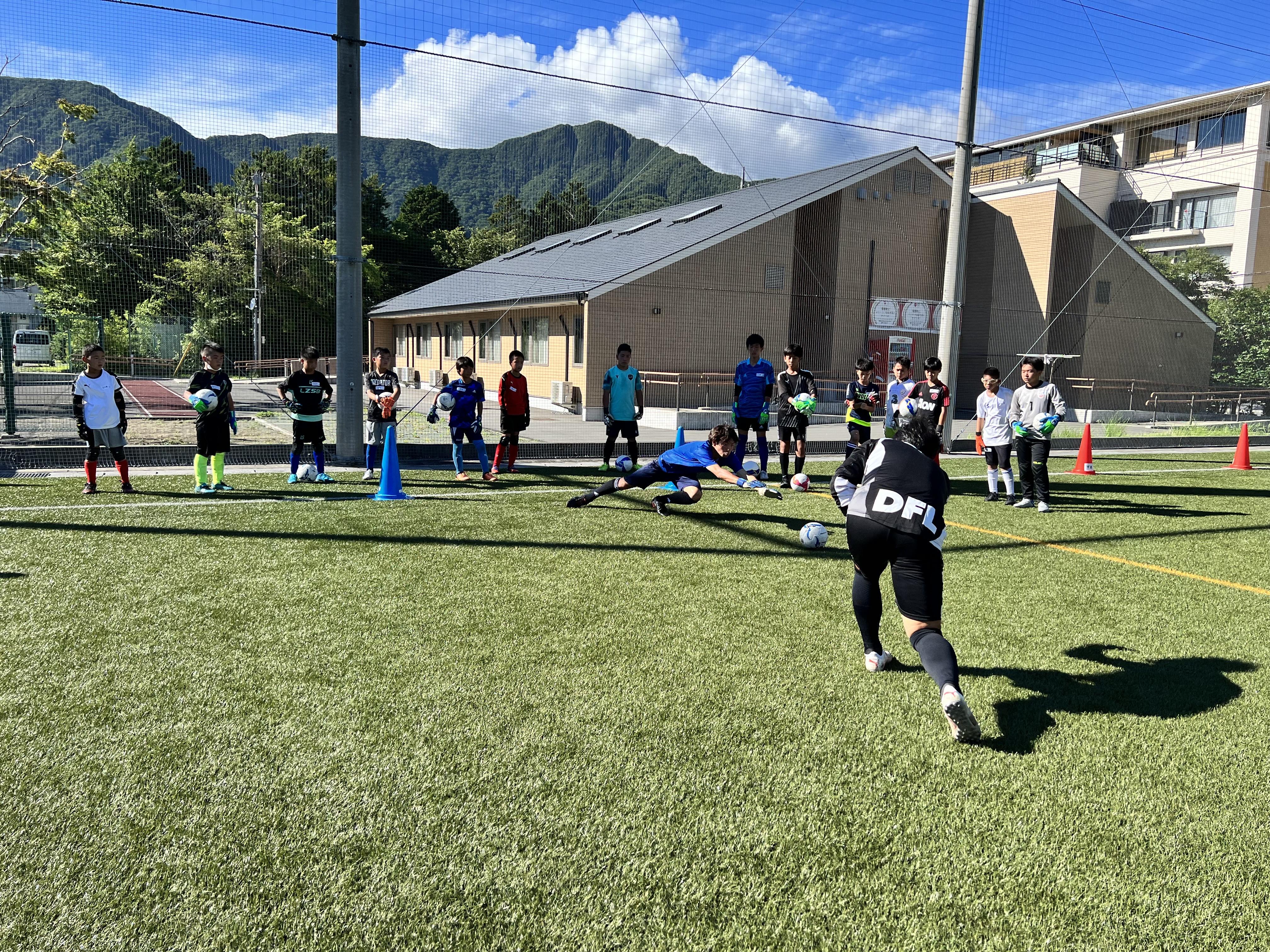 今までは失点を恐れてかゴールにへばりつく事が多く、相手選手から自由にシュートを撃たれ失点することが目立ちましたが、澤村コーチのGKキャンプでチャレンジすることの大切さを教えてもらい、積極的にゴールを飛び出しシューターにプレッシャーをかけることが出来るようになりました。