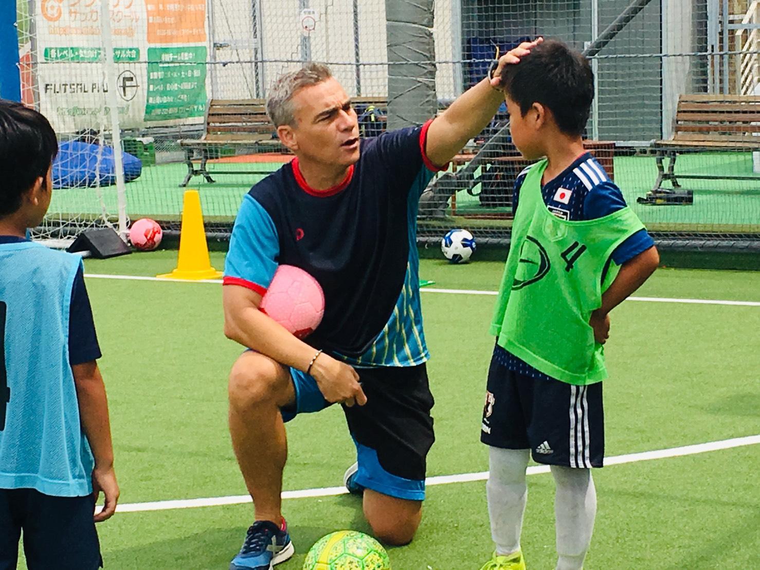 3.トレーニングを見ながらミゲルコーチからお子様に直接フィードバックを行います。