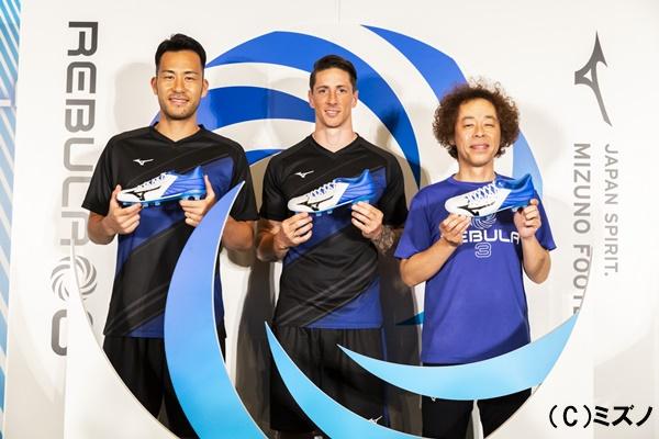 5月23日、都内で開催されたミズノのサッカーシューズREBULAの最新モデル「REBULA 3(レビュラスリー)」シリーズの新作発表イベントに、同社の契約選手でプレミアリーグ・サウサンプトン所属の吉田麻也選手と、Jリーグ・サガン鳥栖所属のフェルナンド・トーレス選手が参加しました。