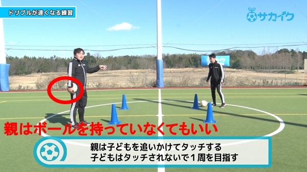 サカイクがお届けする『親子で遊びながらうまくなる!サッカー3分間トレーニング』。今回は初心者に多い、「ドリブルが遅い、素早いドリブルができない」という悩みを改善するトレーニングをご紹介します。広大なスペースがなくても公園などのちょっとした場所でできるので、ぜひ親子で遊びながらチャレンジしてみてください。